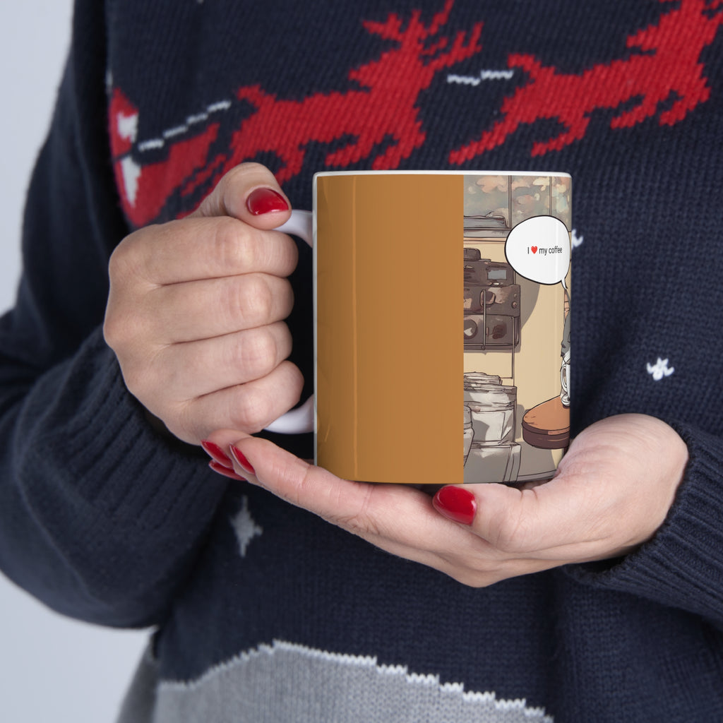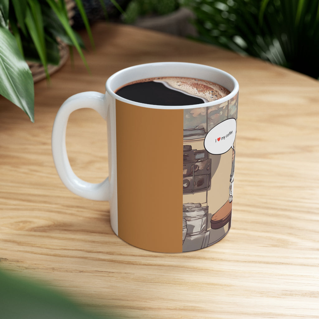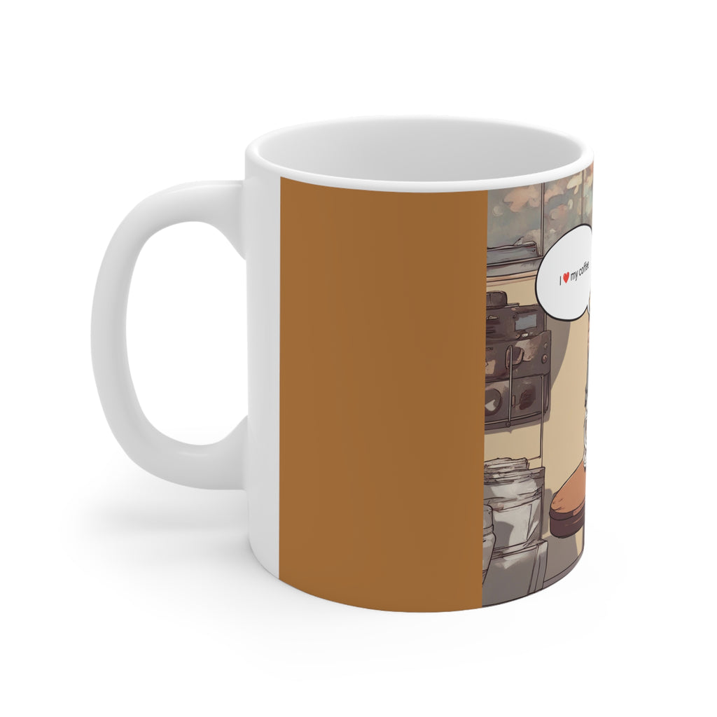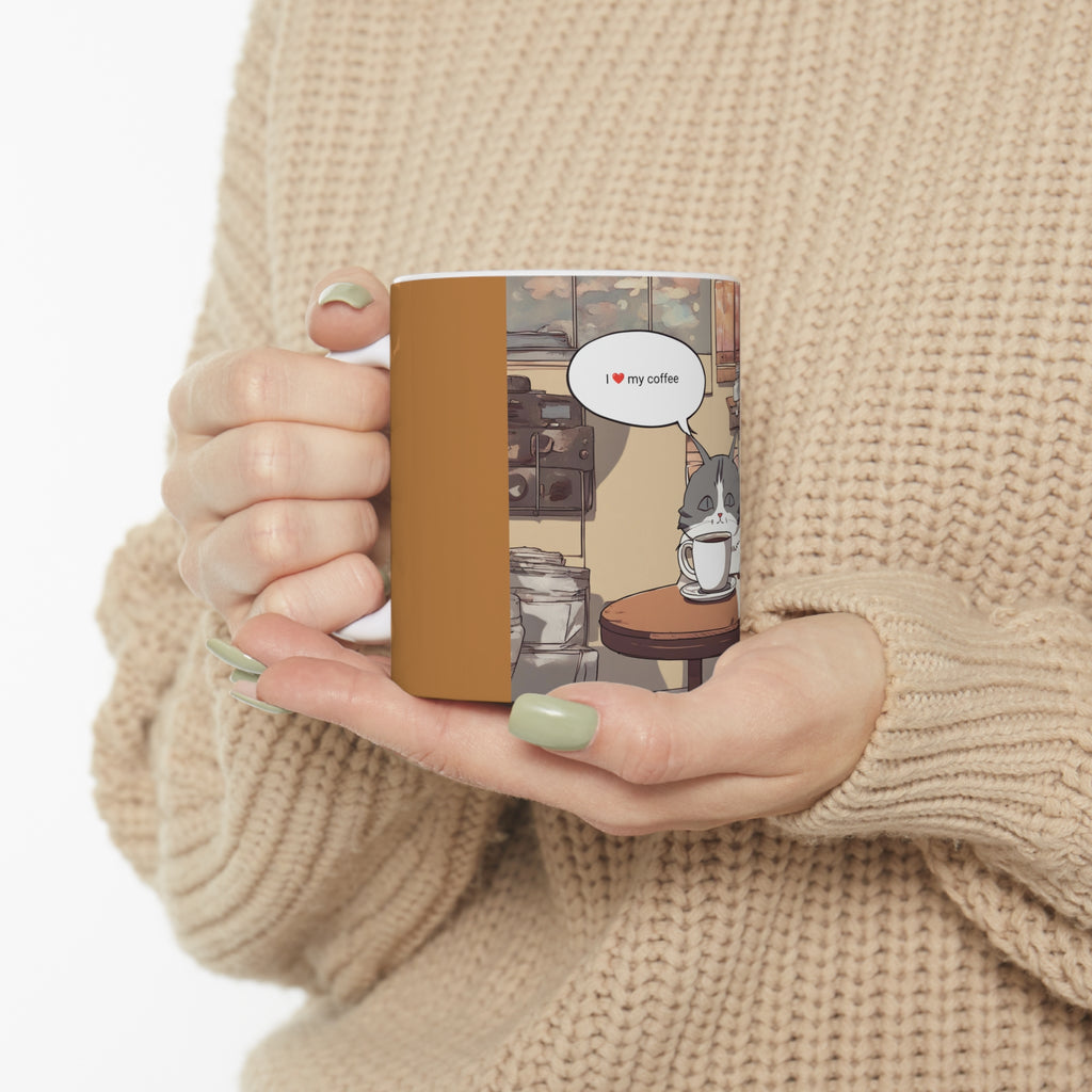 Custom "I love my coffee" Ceramic Cat Mug 11oz