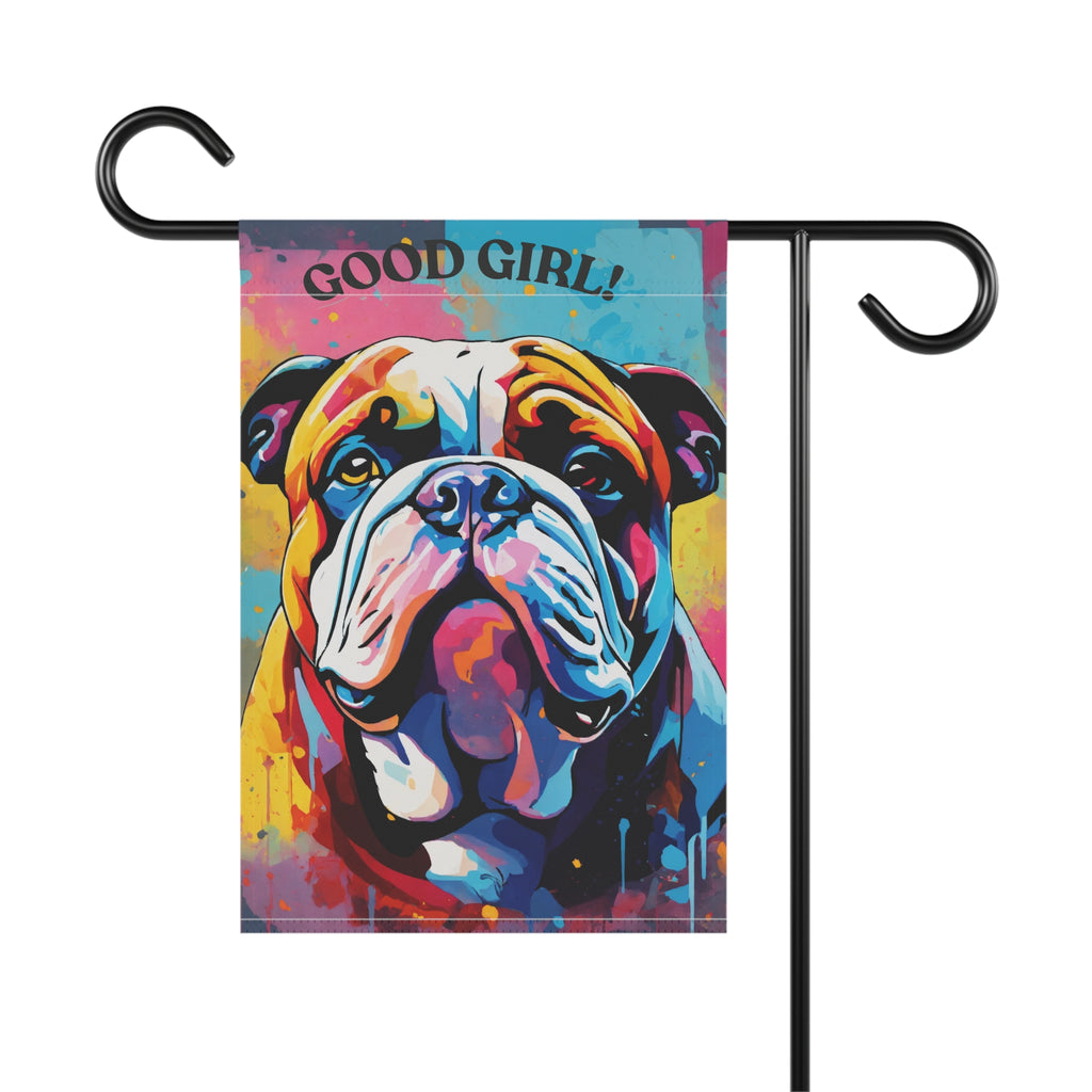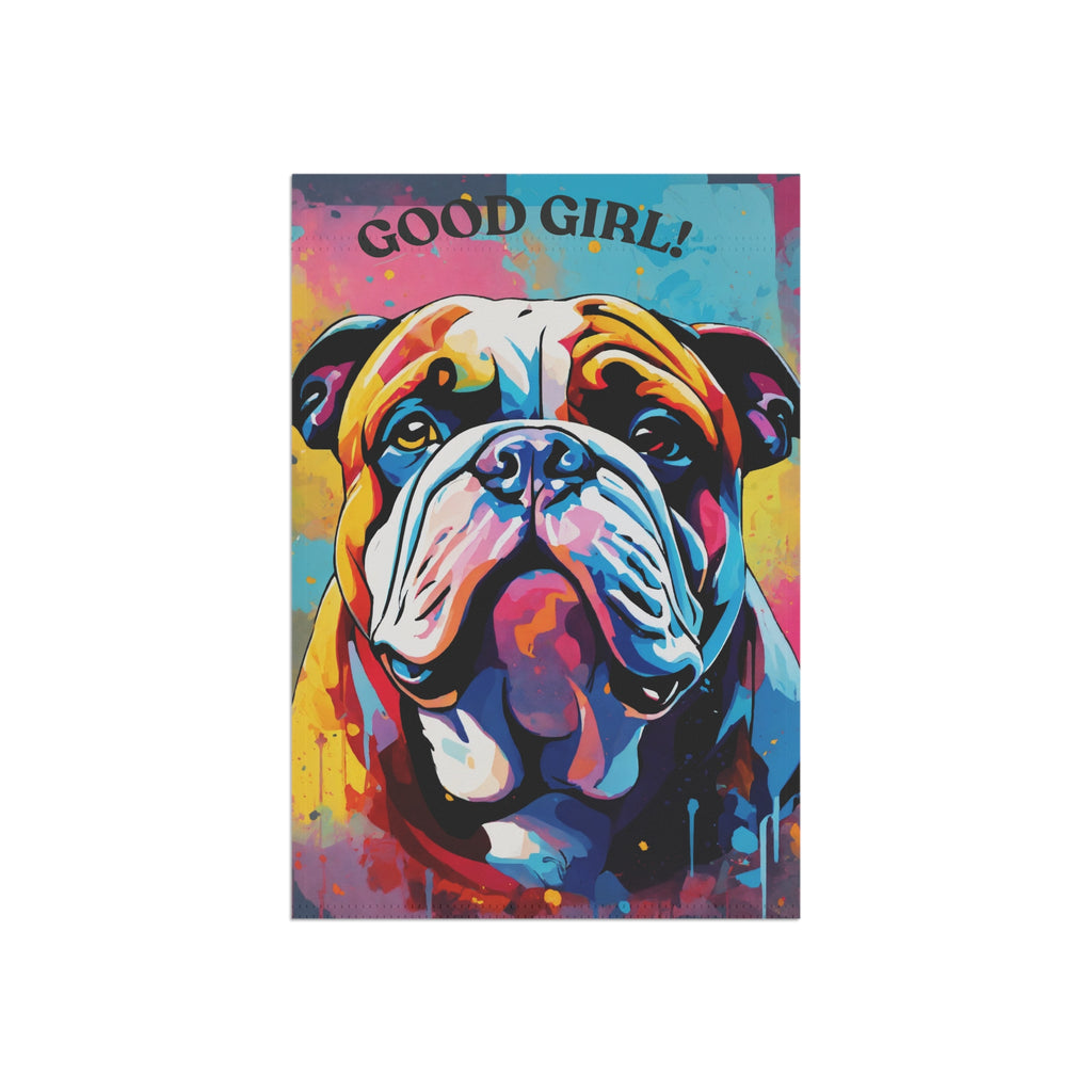Add a playful touch to your yard with our Bulldog "Good Girl" yard flag. Let everyone know who's the goodest girl in the neighborhood with this quirky and fun addition to your outdoor décor. No one will be able to resist smiling at this adorable flag!