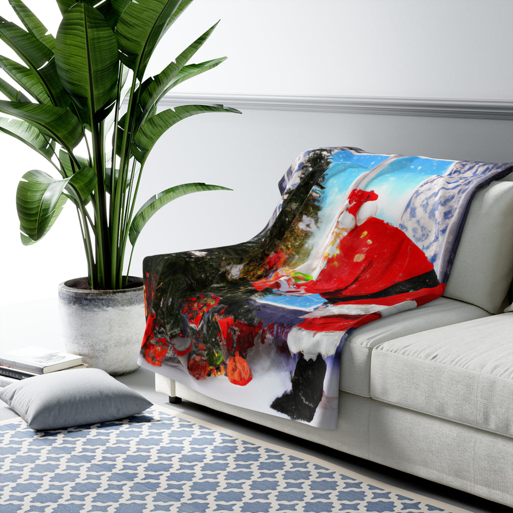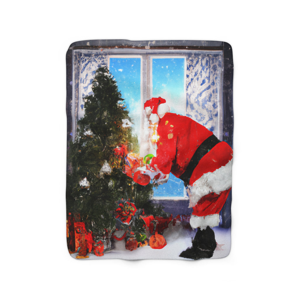 Cozy up this Christmas with our Sherpa Fleece Blanket featuring a heartwarming image of Santa placing gifts under a glistening tree. Embrace the holiday spirit while staying warm and comfortable. Perfect for snuggling up by the fire or adding a festive touch to your home décor.