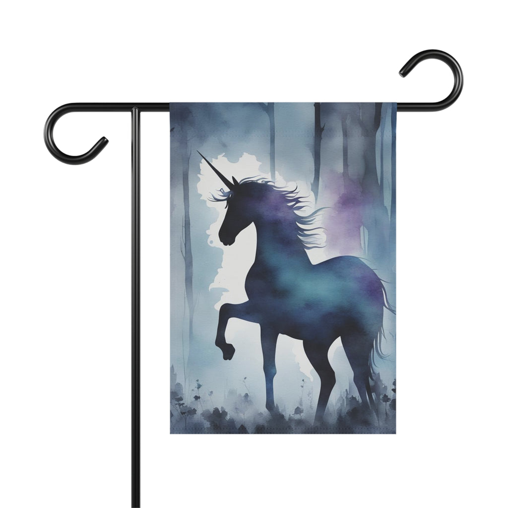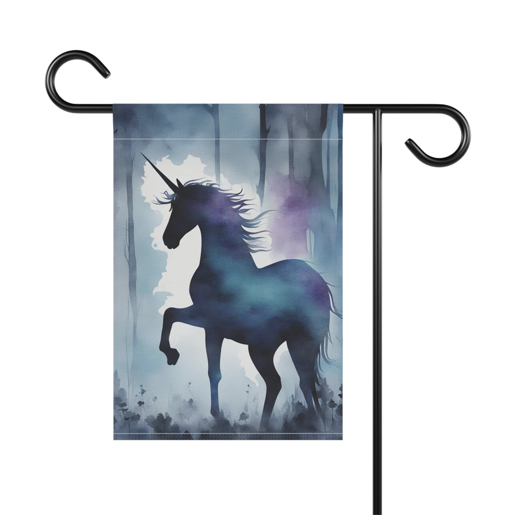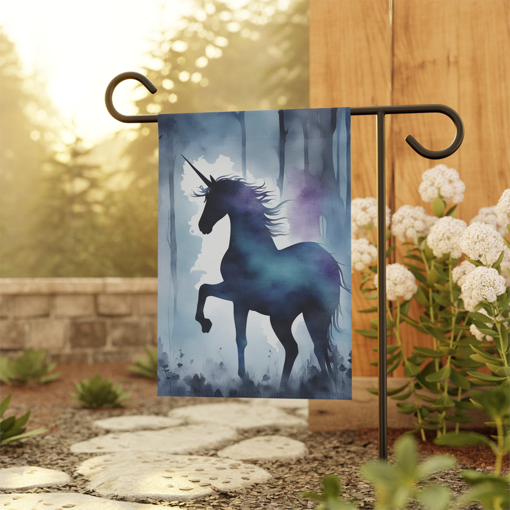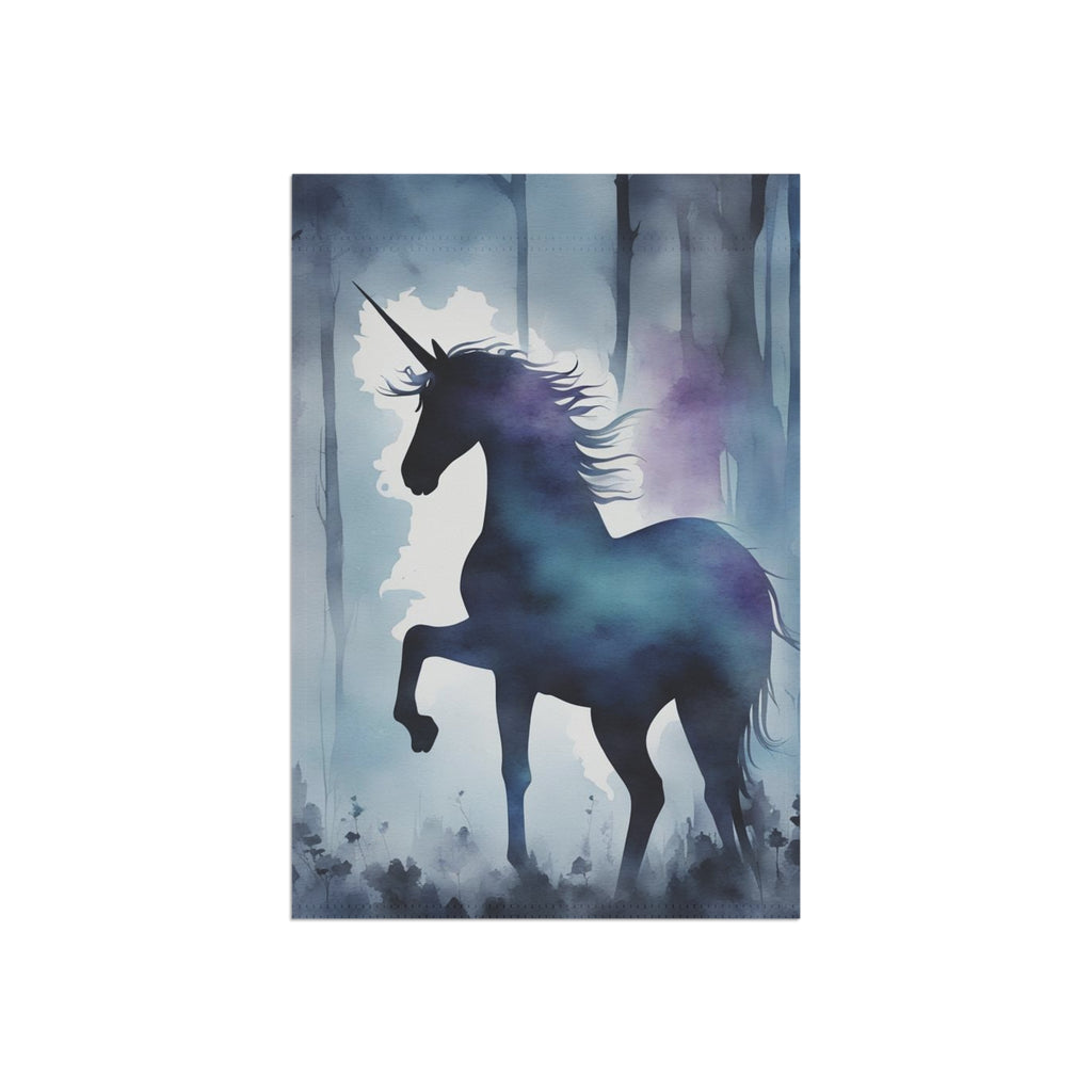 This yard flag is a vibrant outdoor decoration featuring a majestic unicorn design. Made of weather-resistant material, it adds whimsical charm to gardens or yards. The flag showcases the mythical creature with colorful details, making it a delightful and enchanting accessory for any outdoor space. Made with lightweight yet highly durable poly poplin-canvas fabric, these banners come in two sizes (12'' × 18'' and 24.5'' × 32'') and feature a top sleeve for easy placement on poles. Your design goes in crisp detail and color on both sides of the flag.