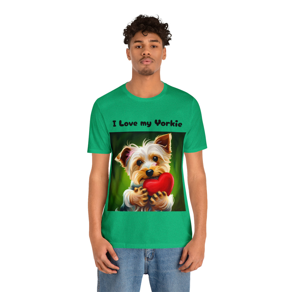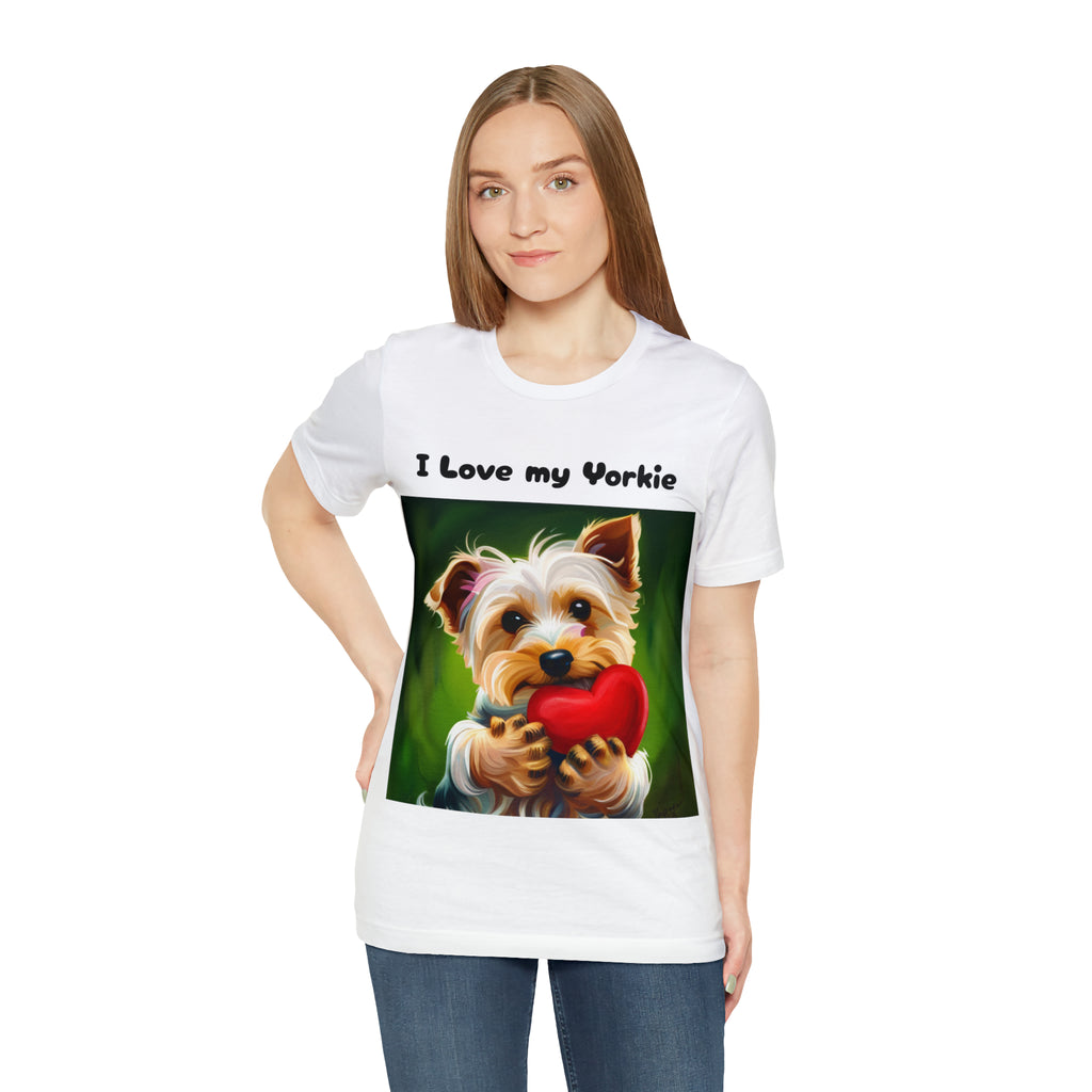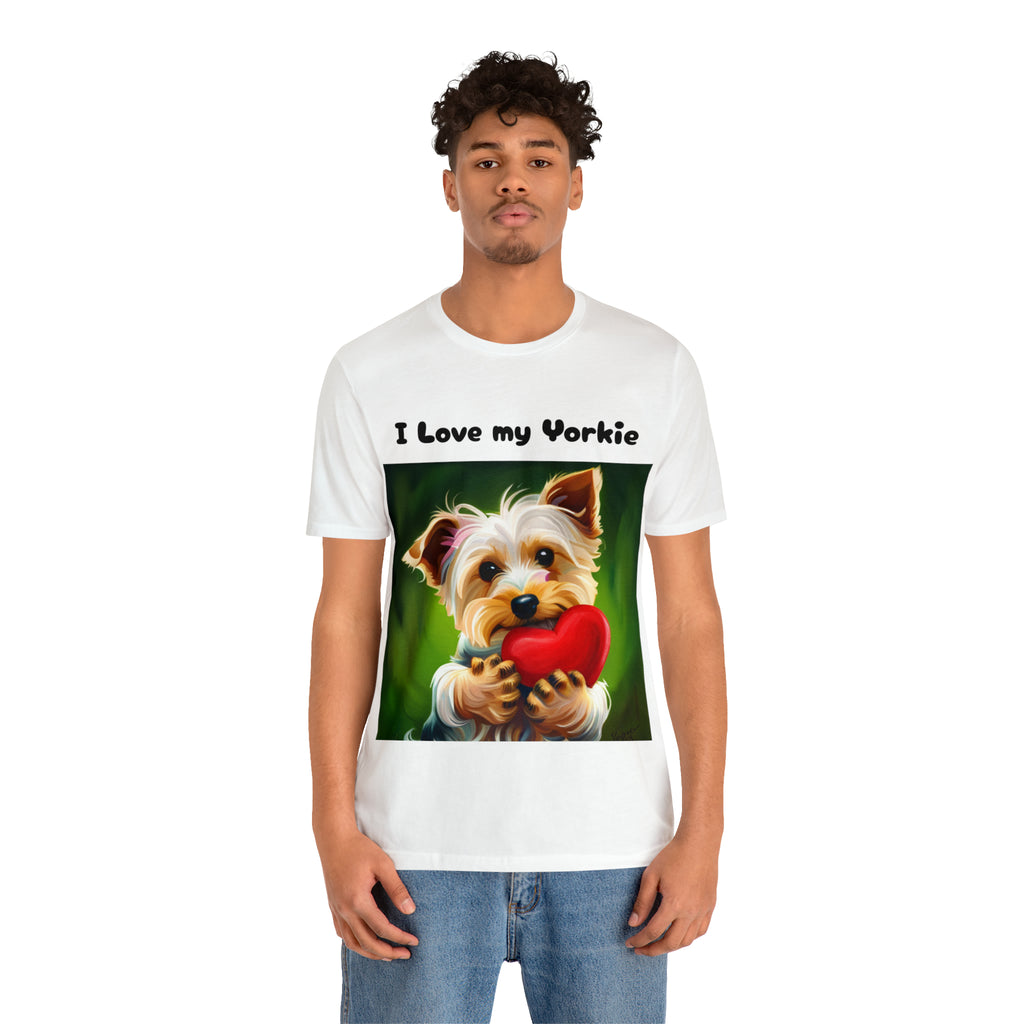 Show your love for your best friend on this cute Yorkie T! Soft cotton and quality print. These t-shirts have-ribbed knit collars to bolster shaping. The shoulders are tapered for a better fit over time.