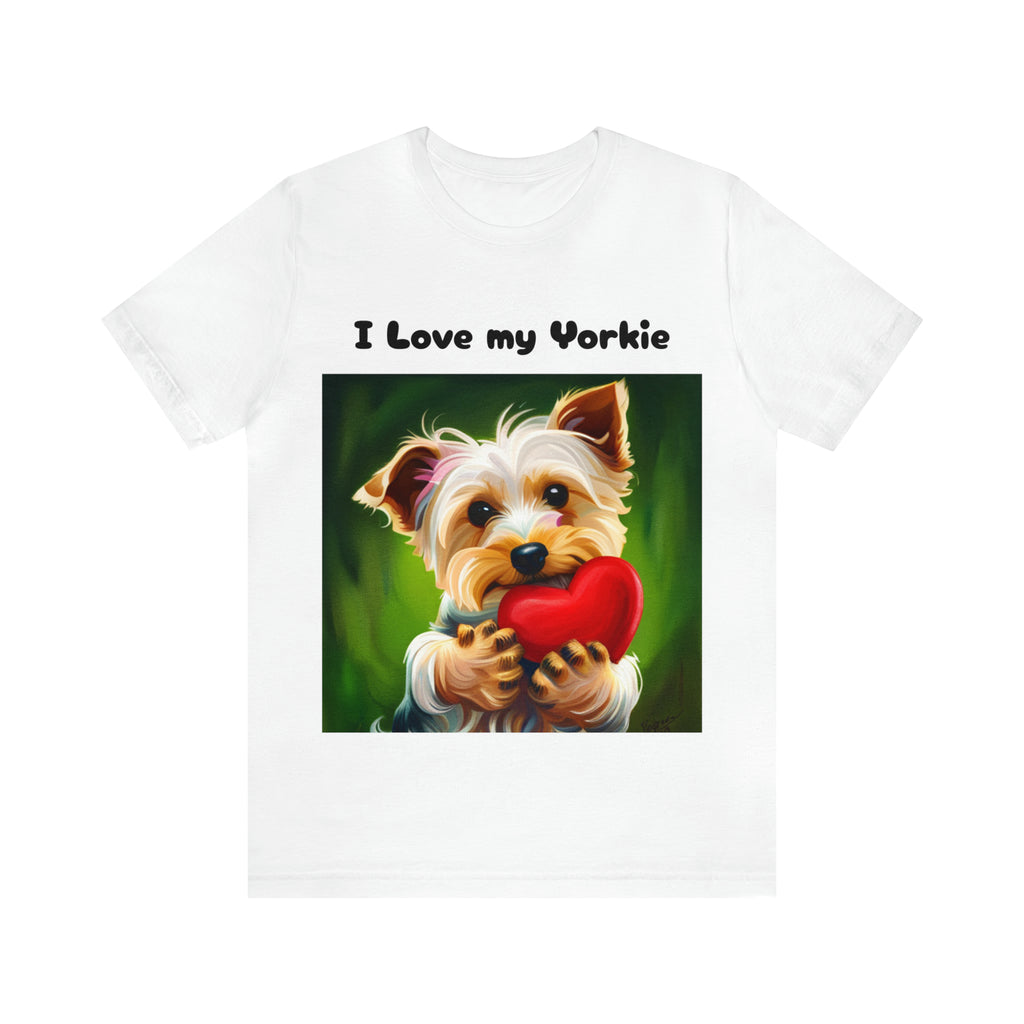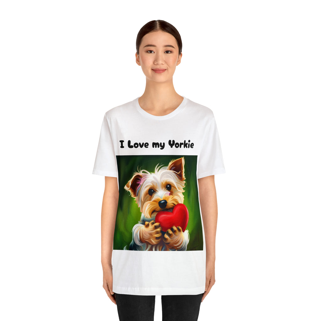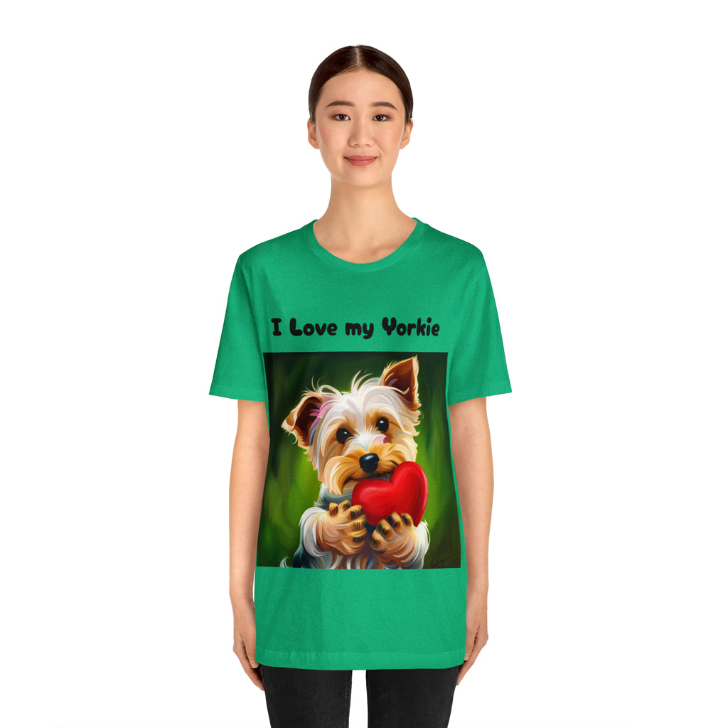 Show your love for your best friend on this cute Yorkie T! Soft cotton and quality print. These t-shirts have-ribbed knit collars to bolster shaping. The shoulders are tapered for a better fit over time.